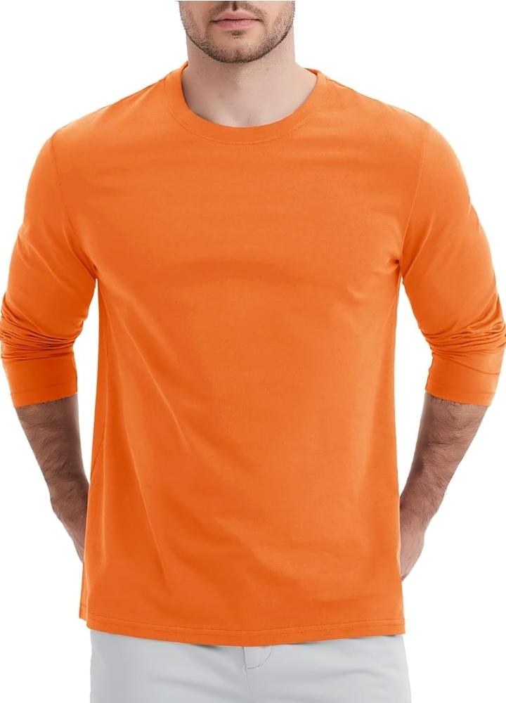 These Men's Orange Round Neck Long Sleeve Shirts are always a cool-weather favorite. Make a statement with the regular fit design of this classic t-shirt, designed to enhance your physique, and complete your stylish ensemble.