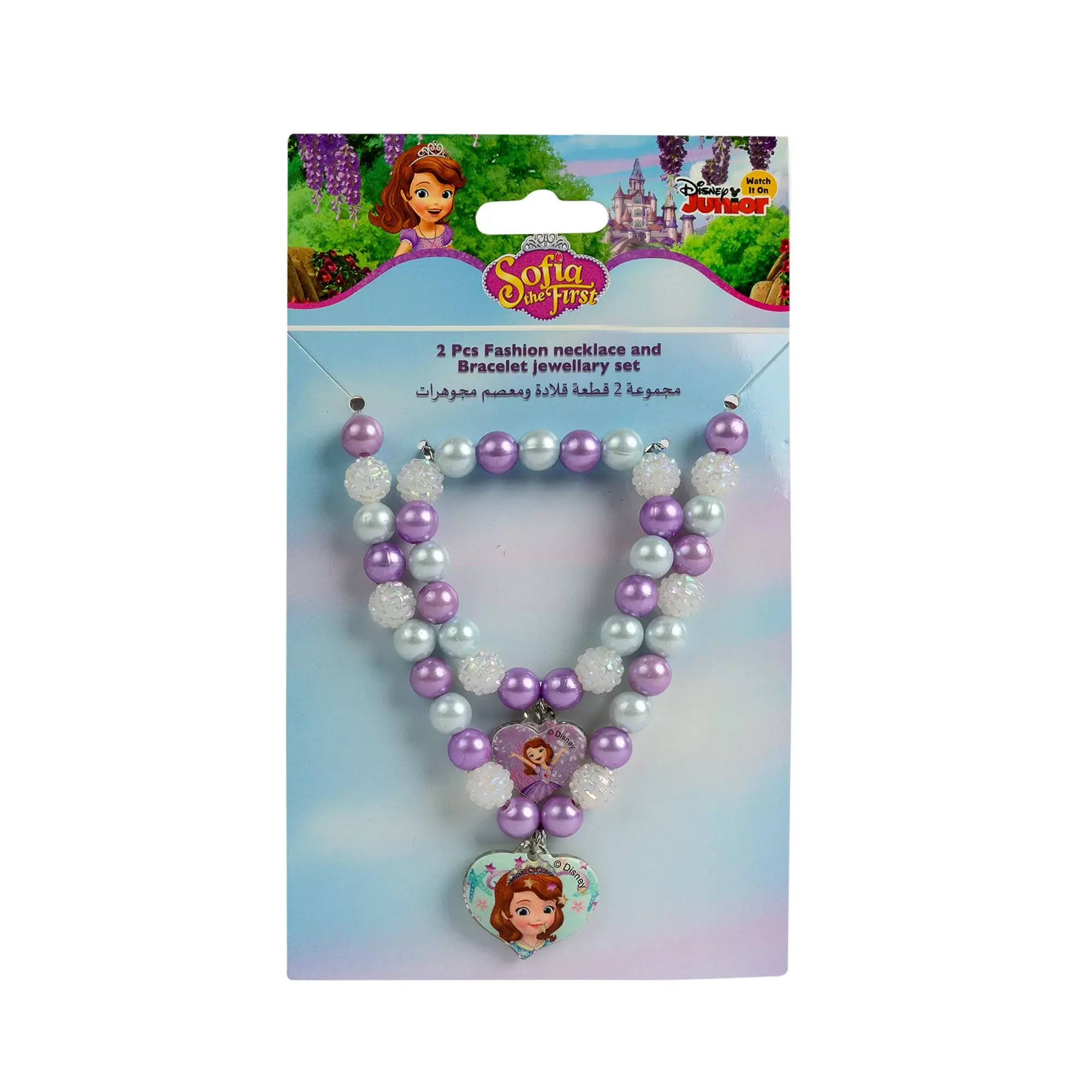This beautiful Disney Sofia 2 Pieces Jewelry Set is perfect for your little princess. The kids necklace and bracelet set is perfect for birthday gifting or party favors. Its stretchable and perfectly fit for any wrist and neck size. Metal Type: No Metal Type Gem Type: No Gemstone Chain Type: Cable Clasp Type: Hook Clasp High quality Not harmful Durable Lightweight Great gift to your baby Perfect size for kid’s neck and wrist