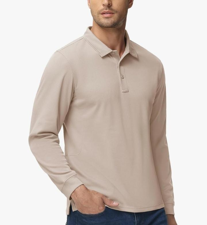 Suitable for pairing with your favorite chino pants or jeans, our men's Beige Long Sleeved polo T-shirts work for both transitional weather and everyday wear.
