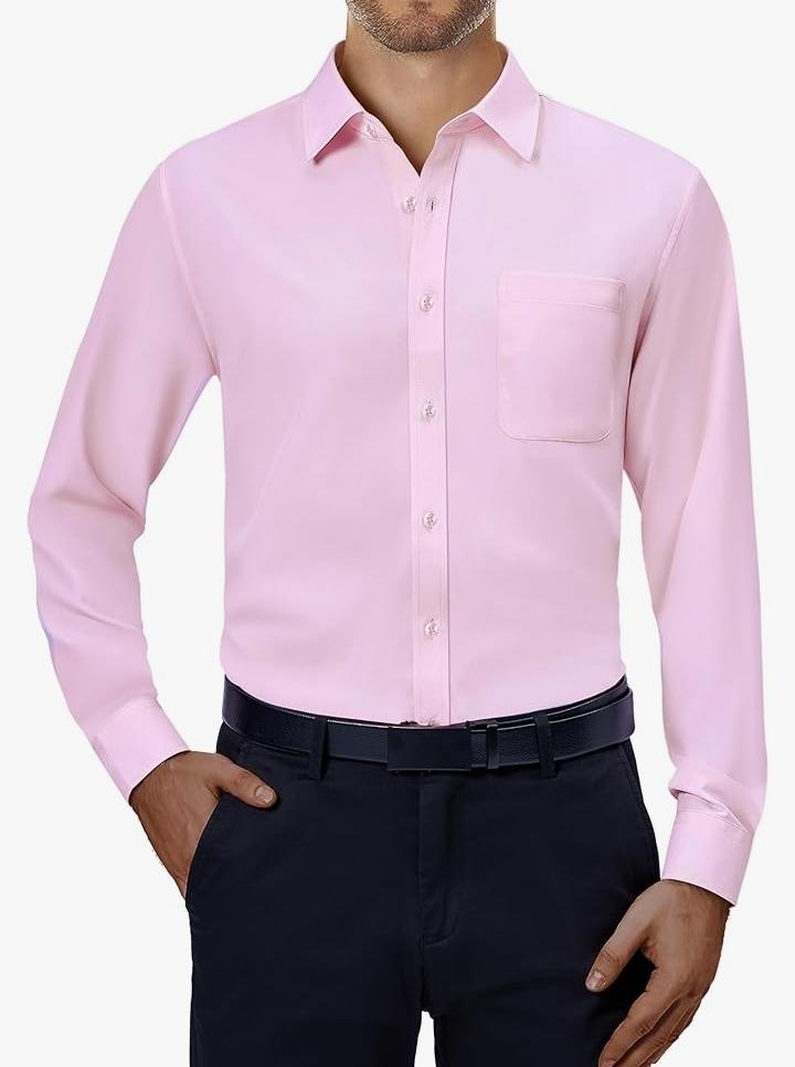 This Pink Button Down Formal,Long sleeve,Lightweight,regular fit,Button down business shirts with collar and solid shirts. Occasion:Men's casual business solid button shirt suitable for all occasions and seasons like holiday, brithday, beach, Casual, Informal Business, Work, Vacation, Date, Wedding and Travel, Classsic shirts for men will make you feel handsome and elegant when you wear it.