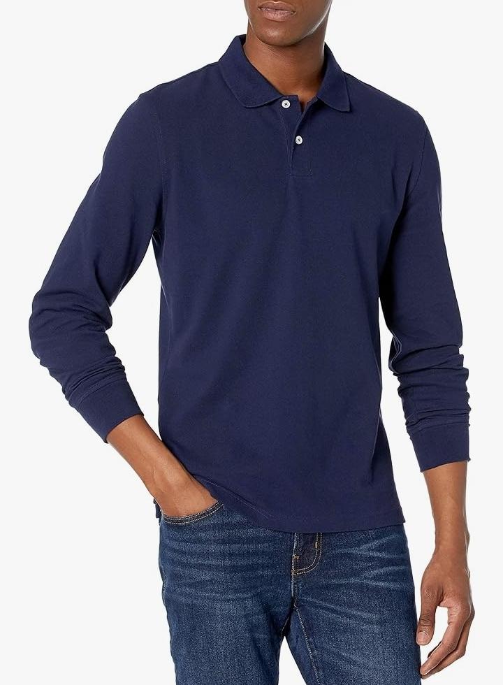 Experience a classic fit with our Plain Navy Blue Long Sleeved men's polo shirt, tailored through the shoulders, chest, and waist
