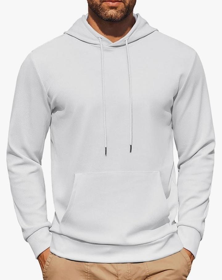 This super warm plain White Hoodie has brushed interior to provide superior cozy softness Double-lined hood for additional warmth with color matched draw cord Pouch pocket for storing your essentials Made to last double-needle stitching at shoulders, armholes, neck, waistband, and cuffs Tear away label for customizable comfort Spun air jet yarn delivers a softer feel and reduced pilling