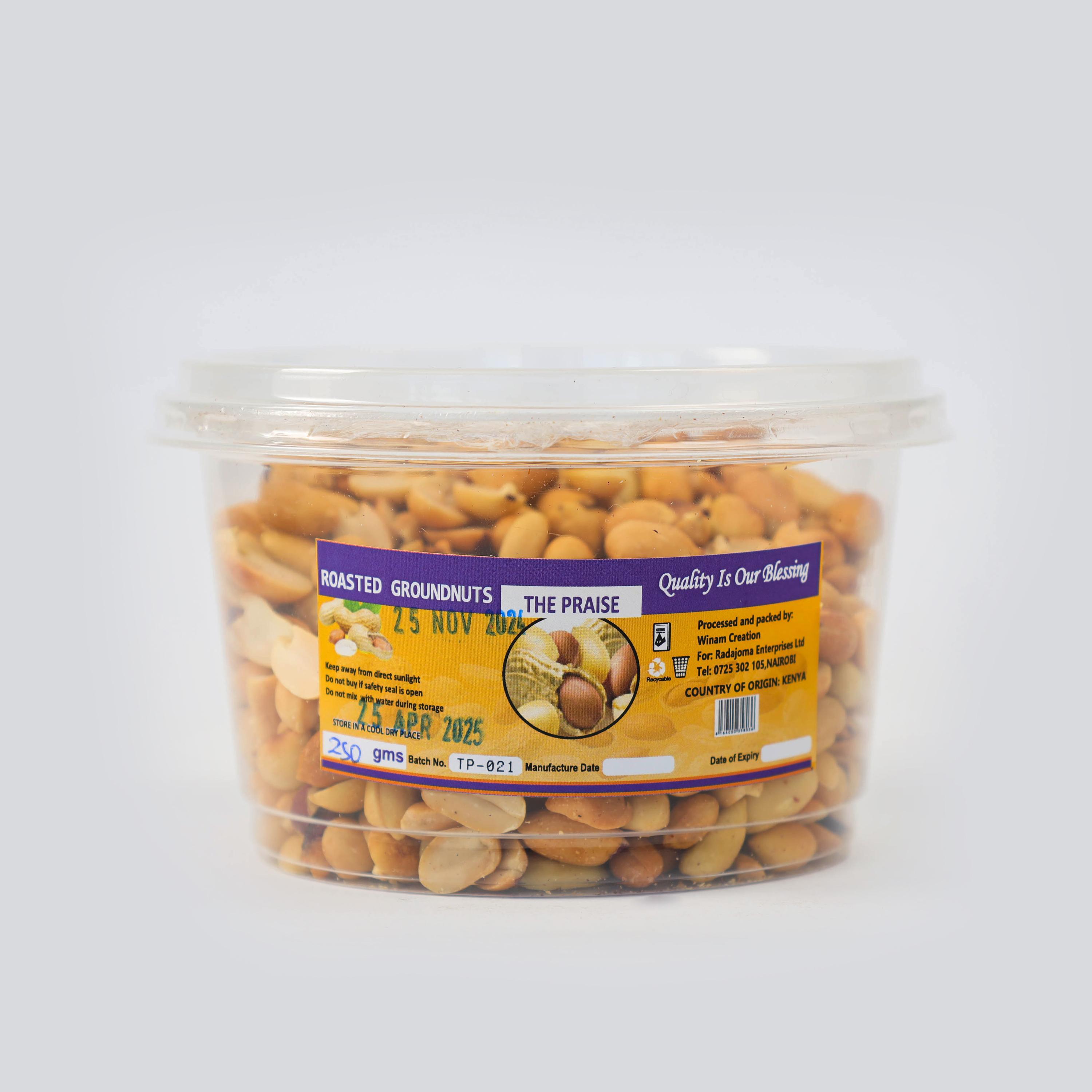 250gms roasted peanuts, peeled in a container
