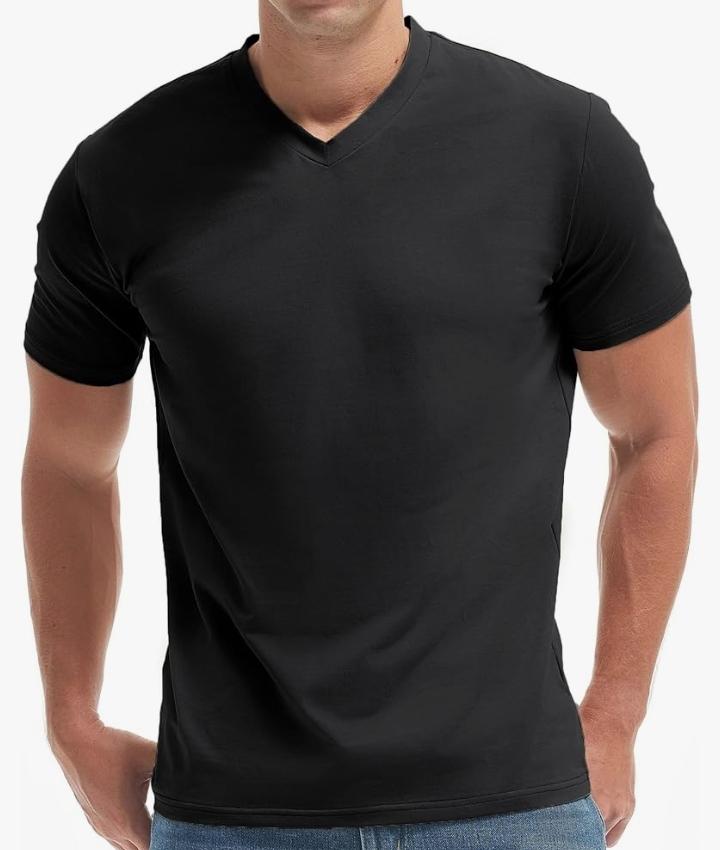 High-quality material: Our Black Premium V-Neck T-shirts fabric is soft, comfortable, moderately elastic Comfortable fit: The design of the t-shirt is form-fitting, which can show off your body shape well and feels very comfortable to wear. It is suitable for various occasions. Essential T Shirts for Men . Performance Fabric. Wrinkle Resistant Breathable.soft and comfortable. Durability: The material is easy to care for and clean, and the t-shirt does not deform after multiple washes, so it is very durable