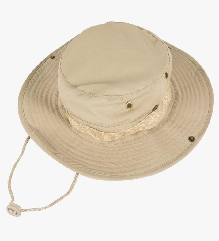 This Light Beige Safari Hat has excellent sun protection. Provide you better protection from sunshine and damaging rays for face and neck. Around mesh can promote airflow to keep your head cooler, built-in anti-sweat band can eliminate sweat from the head, which can protect your face. GOOD DESIGN WIDE BRIM HAT:The well-designed summer outdoor hat has two ways to use it. Both sides are equipped with rust-proof buttons. When the brim is rolled up, it is a cowboy hat. Loosen it, will be a fashionable sun-proof fisherman hat/safari hats for men and women.